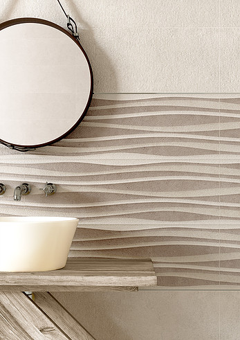 Основной цвет коллекции – молочно-белые и бежевые оттенки, и именно это определяет ее универсальность: лаконичный естественный цвет идеально сочетается с любыми другими цветами. Декорированные элементы с объемной фактурой и волнистым орнаментом привлекают к себе внимание, расставляя правильные акценты в интерьере. Крупный удлиненный формат плитки подчеркивает достоинства большого пространства.